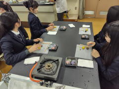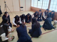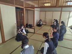 部活の活動風景です。3年生はお点前の練習、1年生は2年生から、お茶の基本を学びます。