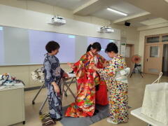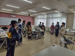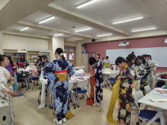 ゆかたの着付け講習会です。時期としては、毎年6月上旬に行っています。
