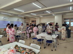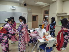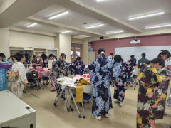 学校祭のお茶会が茶道部最大の行事となりますが、ゆかたを着るため、学校祭が近くなると着付けの練習をします。