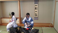 例年は、学校祭の一般公開日では、ゆかたを着て、お点前を披露します。
