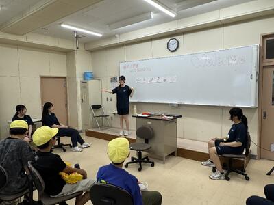 授業の計画・準備・実践を通して、生徒の英語運用能力およびコミュニケーション能力の向上を図るとともに、日頃の授業で培った力を生かし、児童の習熟状況に応じた指導を行うことで、英語学習の楽しさを体感させるとともに、奉仕の精神を育成することを目的としています。