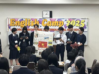 英語を使ったコミュニケーション能力や英語で考えアウトプットする力を養うとともに、英語指導助手や外国人留学生との交流を通して異文化理解を深めます。1年生の恒例行事です。
