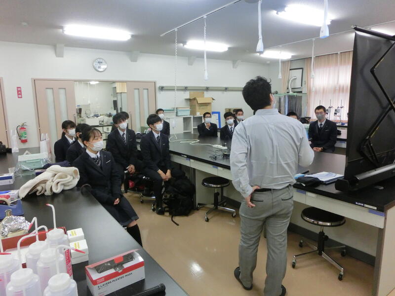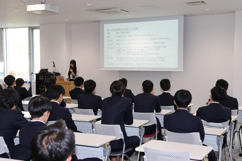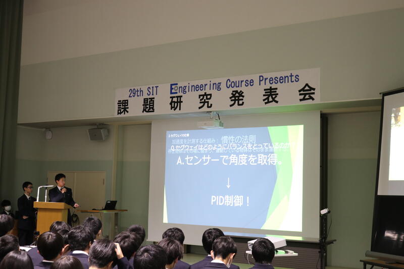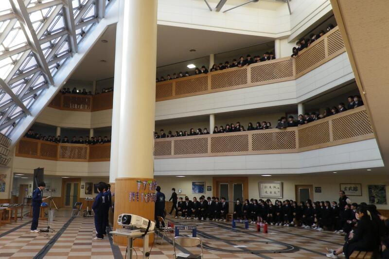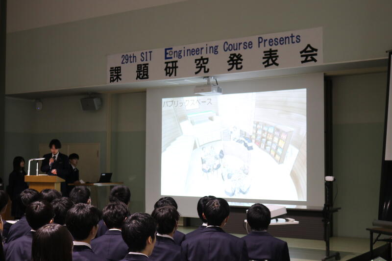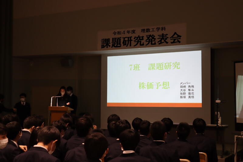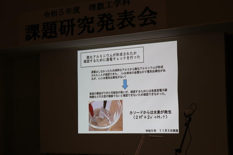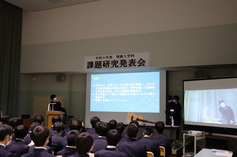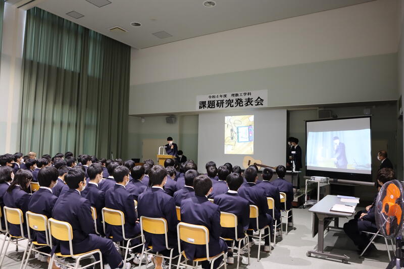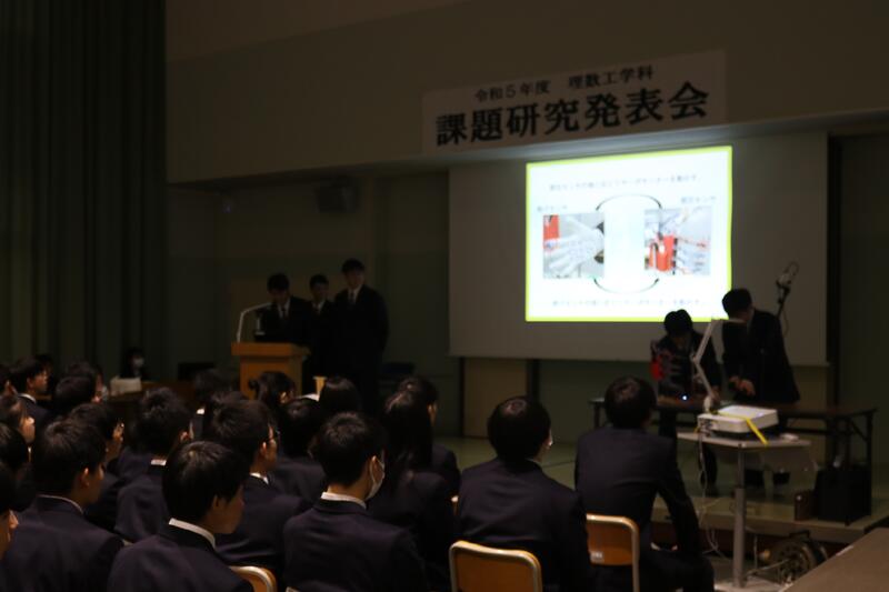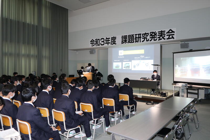 3年生が課題研究の成果を発表し、1・2年生が見学しました。