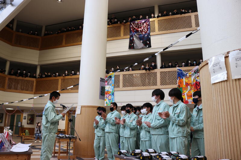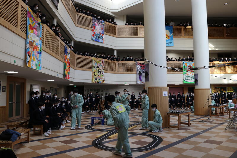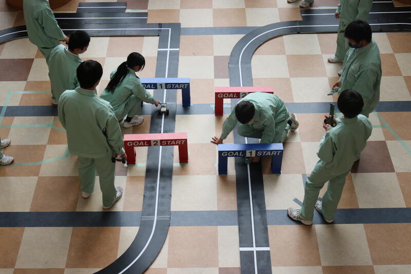 1年生の行事である校内ロボット大会が開催され、MIXクラス対抗の団体戦や、個人戦のタイムレースが行われました。